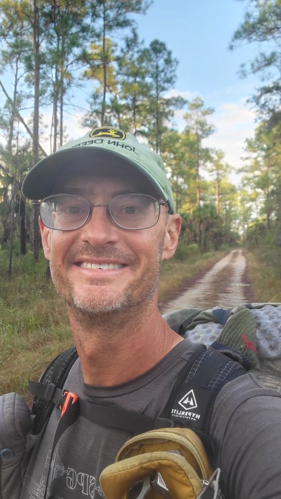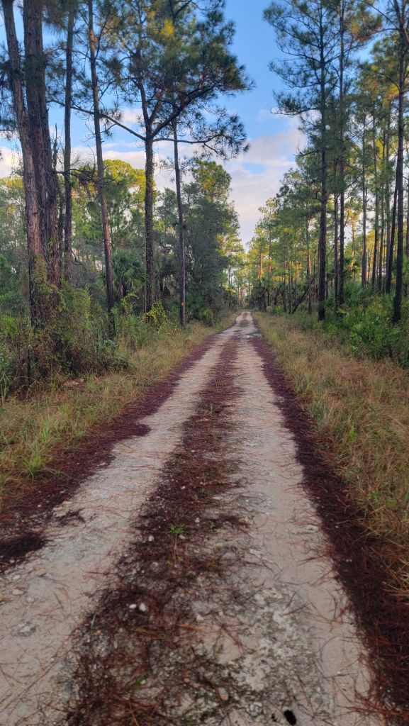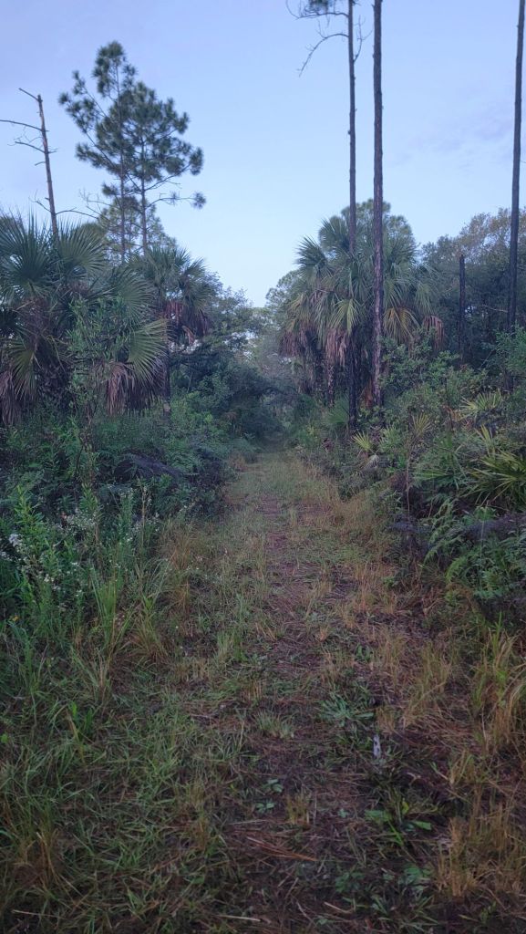 Monday, December 8th, 2025. Nobles Campsite. Off m35.7 of the Florida Trail. Tented near the picnic table and fire ring. Probably 70ish and 90% humidity. Water falling from trees above. Woke naturally at about 545am. 26.234962,-81.073603