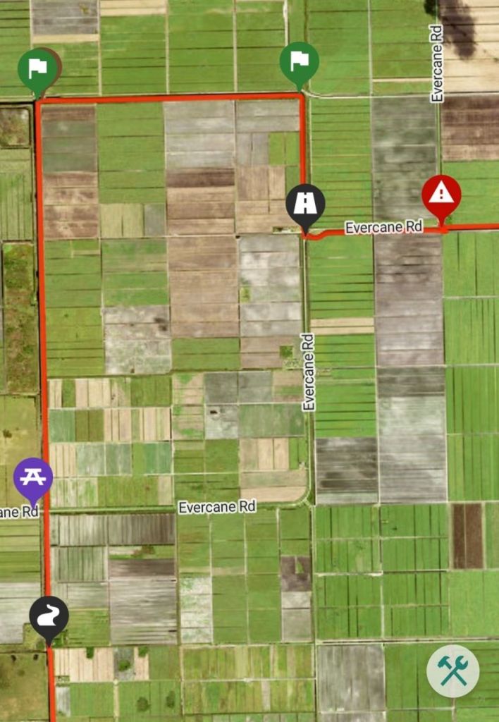 I break from the red line at Evercaine Road. Mile 79.3, Google Maps says from there it is 13 mies into town. It’s a busy asphalt road with no shoulder, but it’s not that bad.