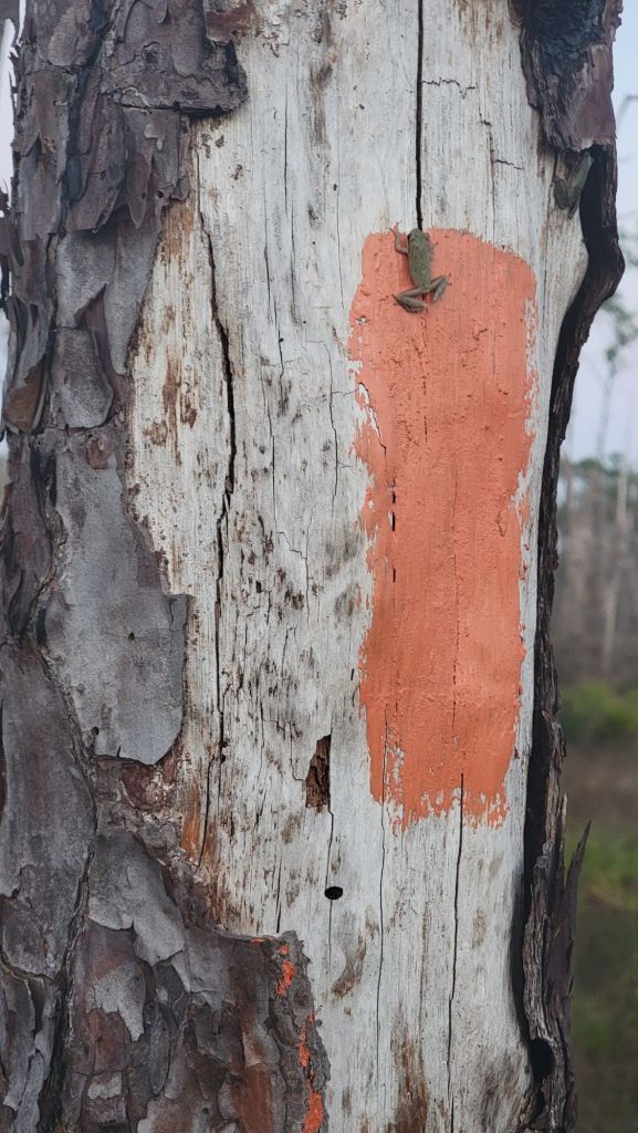 Walking in the dark is very intimidating indeed. I hear no gators but that doesn’t stop me from thinking about it. Navigation is the most difficult bit. I do pretty well and the trail is well blazed, not that this helps if I can’t see them. As it turns out, spiders are the largest concern. They are everywhere in make 4.4 before turning off head lamp at 640ish.