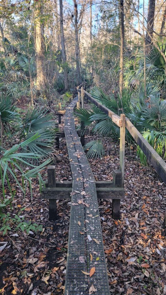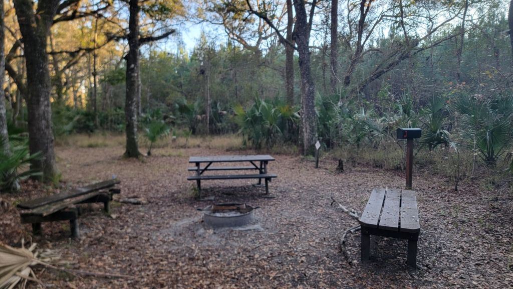 Friday, December 26th, 2025. Tented 0.4 miles east on top of the canal embankment from where the trail comes in from Kilpatrick Dam Road (0.7 miles from turn off Kilpatrick DamRoad). M482.0 of the Florida Trail. Compacted sandy soil underneath overhanging trees. And bears. Woke naturally at 5:54 am. 55°, clear and calm. 29.529107,-81.782636